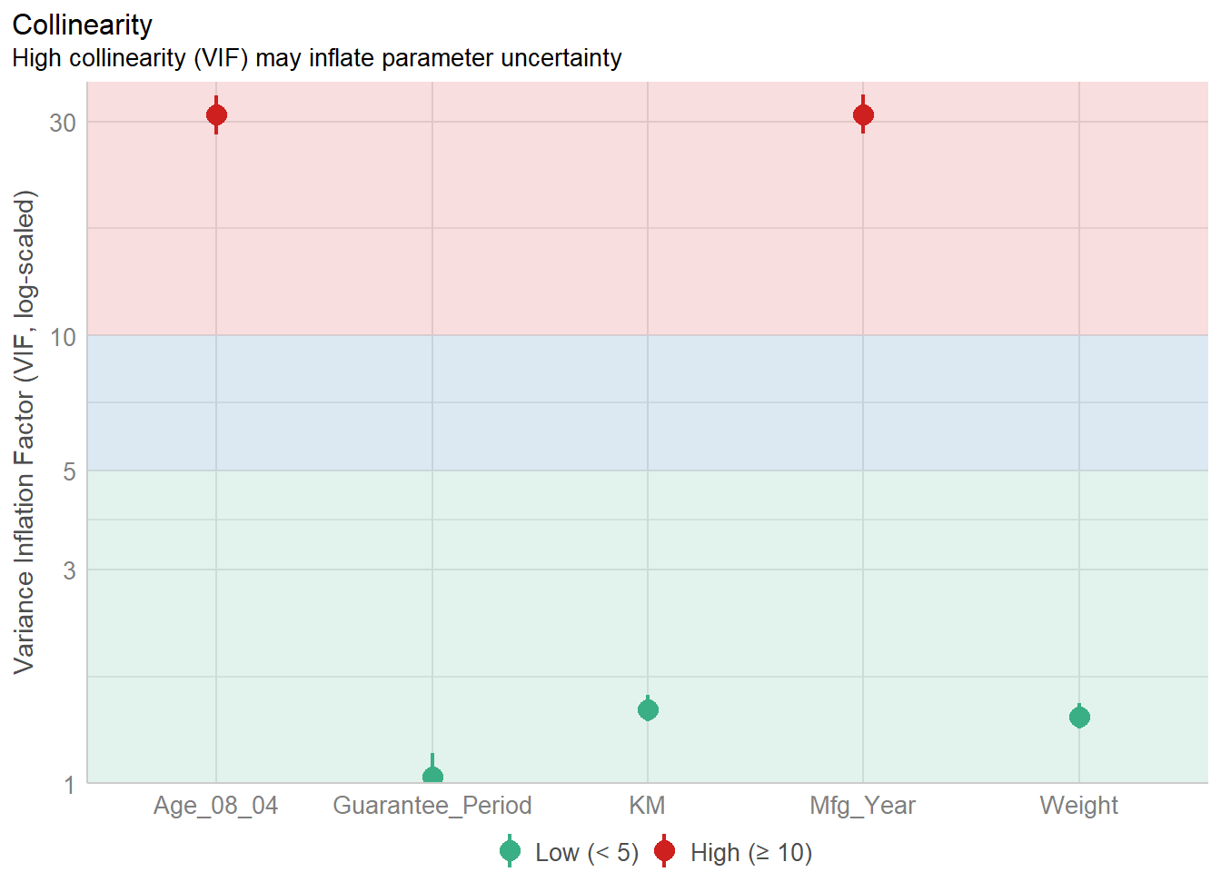 Using check_collinearity() method from the performance package