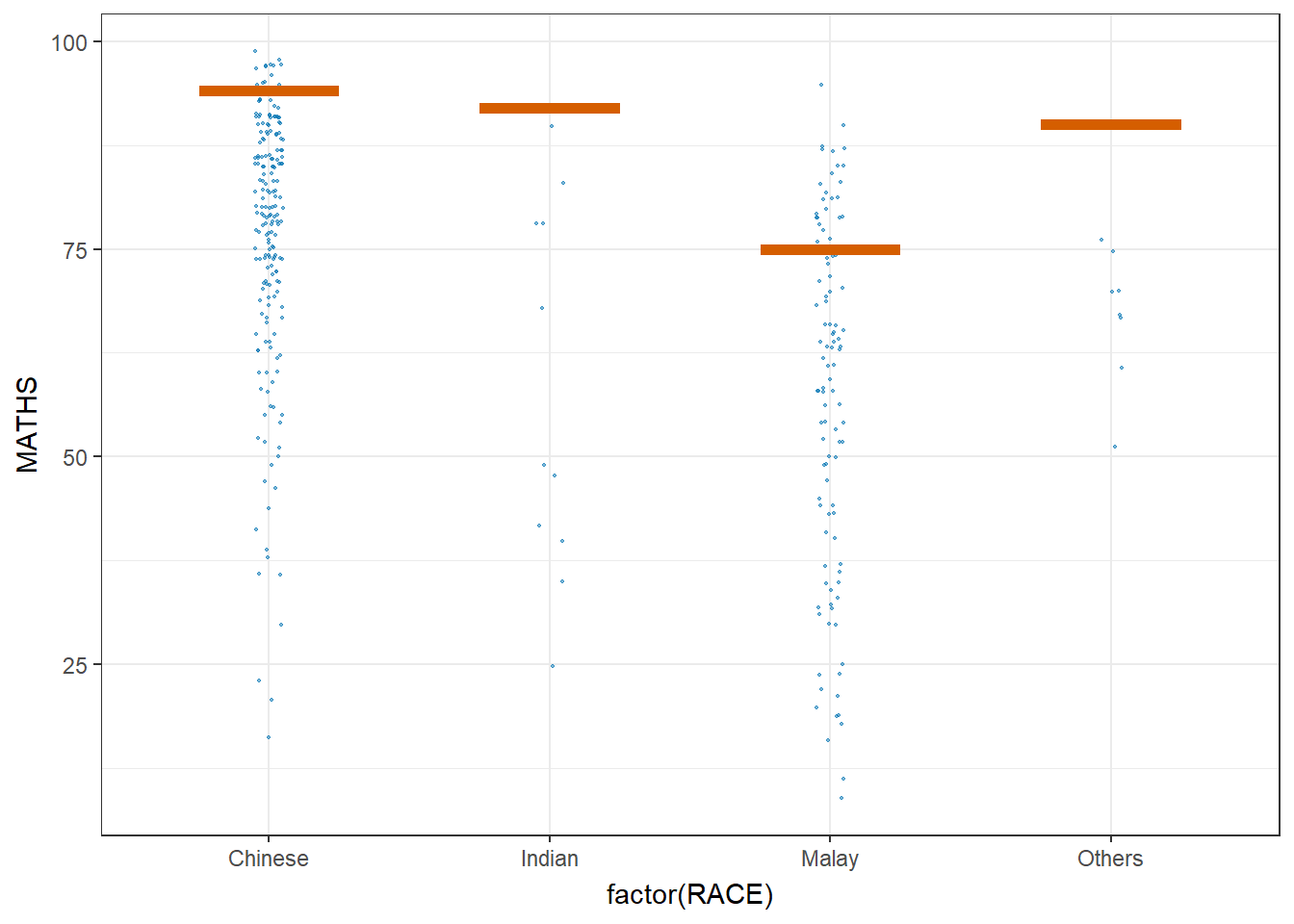 geom_hpline(data = sampler(25, group = RACE), height = 0.6, color = "#D55E00") +